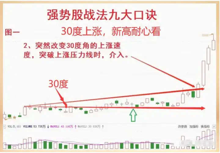 在上涨形态中,如果是沿着30度这样的角度上行,那是主力还没有开始行动,这是市场合力的结果,就好比水总是流向阻力比较低的方向,而这时候主力只需要顺势拉起,主升就走出来了。