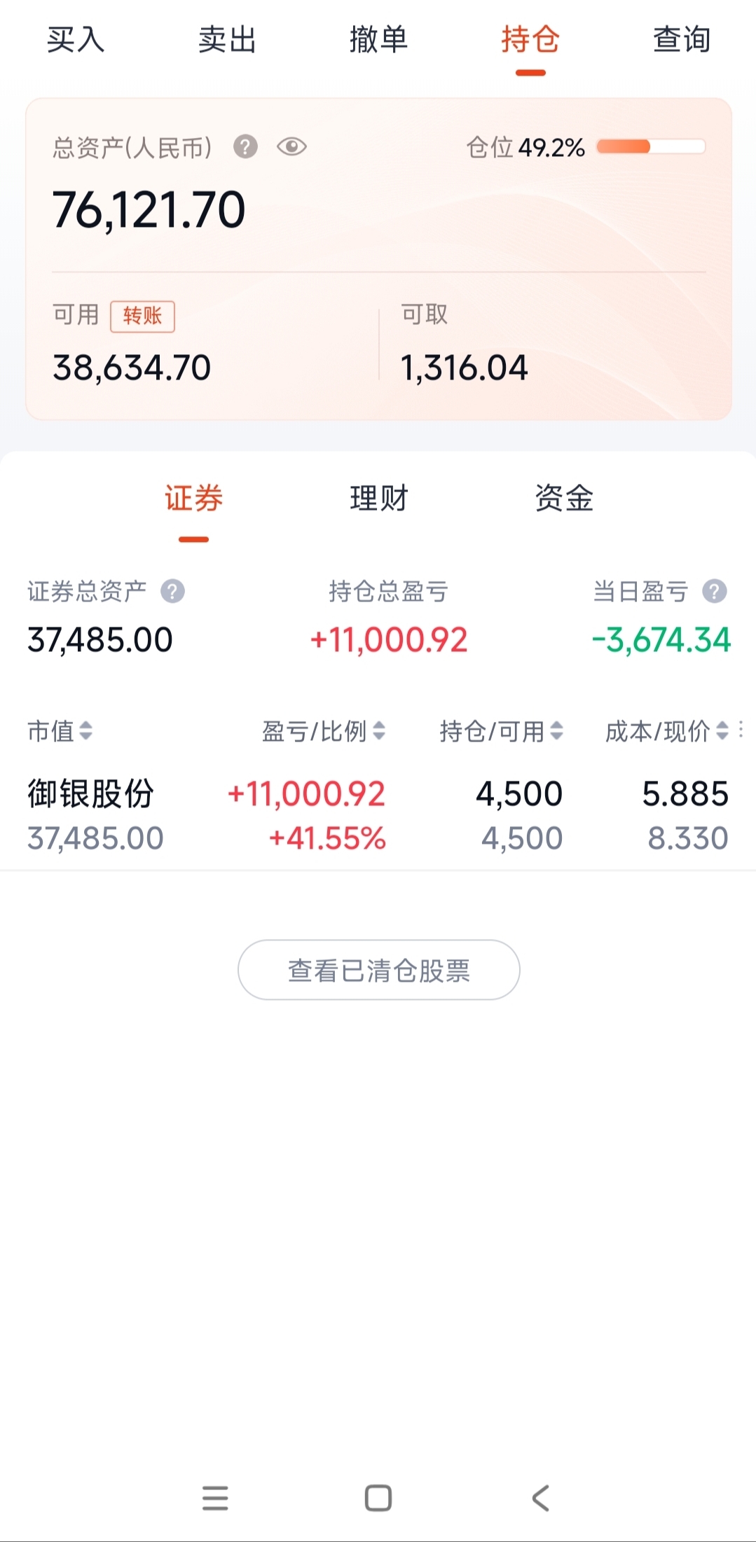 新手宝妈,挪子金库,9万入市,勇闯大A。实盘交易第145天,今日亏损3674元。今日持有御银股份。