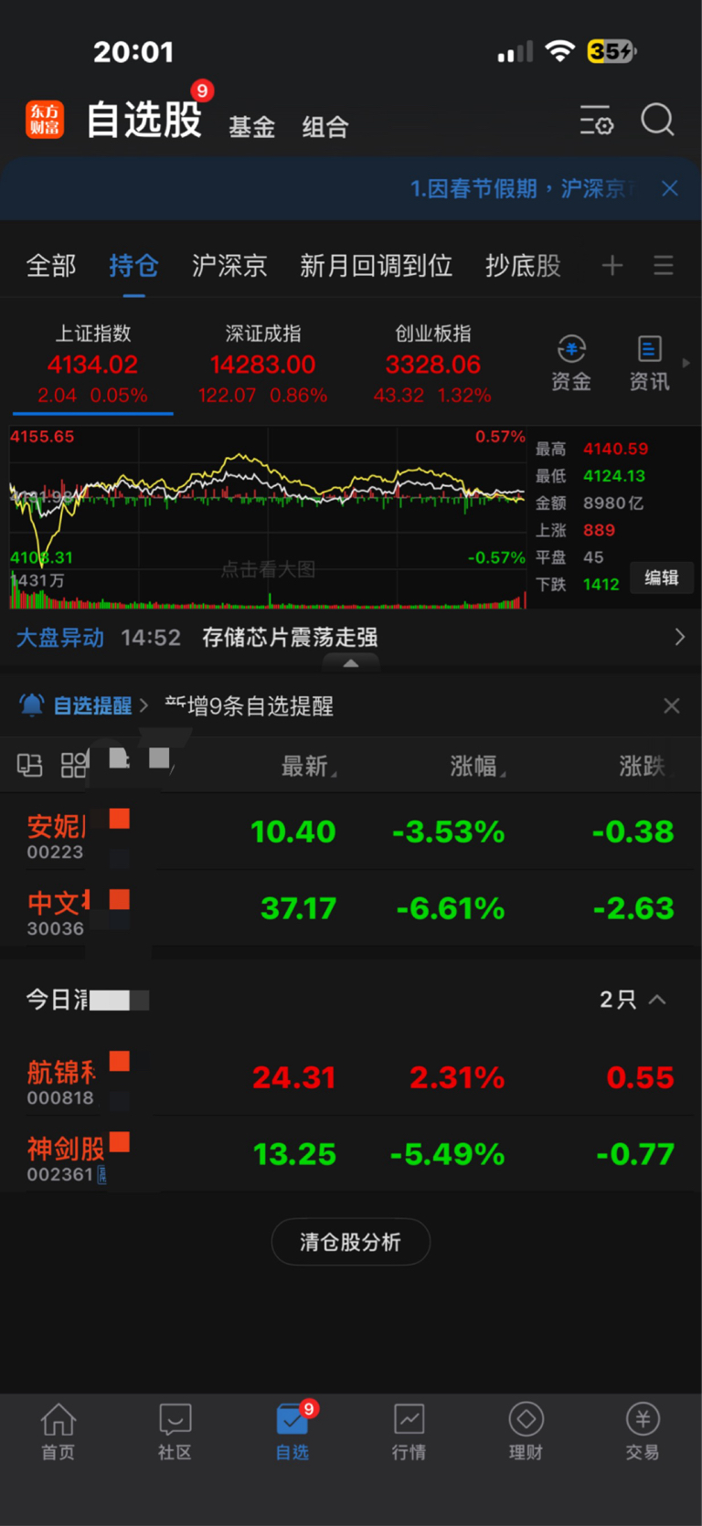 最后一天没有发红包,竞价走弱,等待明天回本减仓,继续持股过年,看好那只中文。