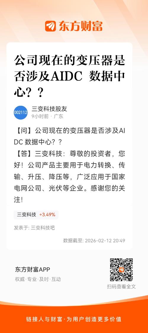 (来自 深交所互动易)  答复时间 2026-02-12 11:30:04