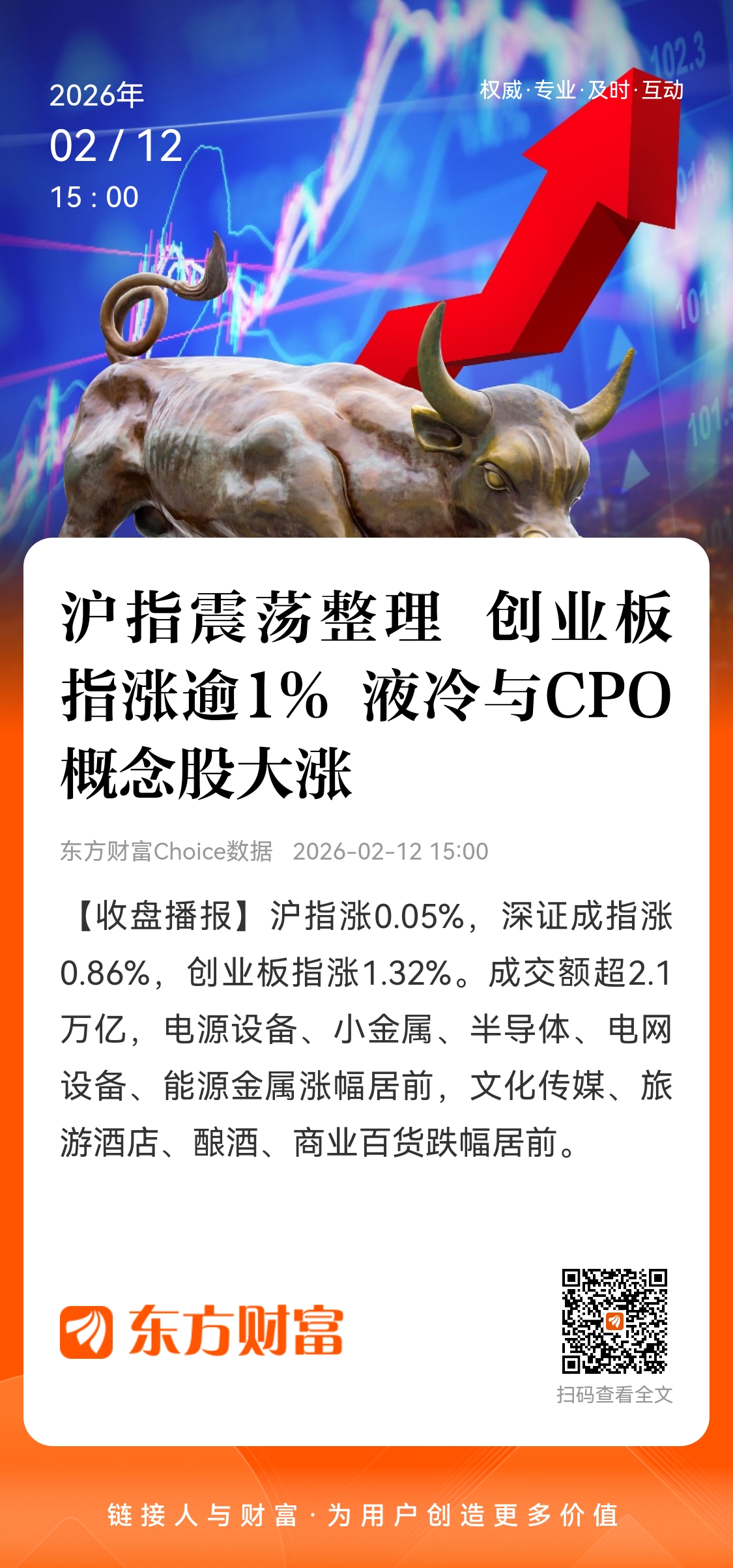 沪指震荡整理 创业板指涨逾1% 液冷与CPO概念股大涨东方财富Choice数据