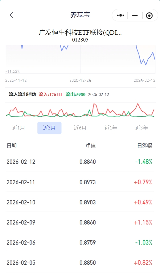 南向资金两天扫了快100亿。机构跟散户永远是反的。广发恒生科技ETF联接C近一周
