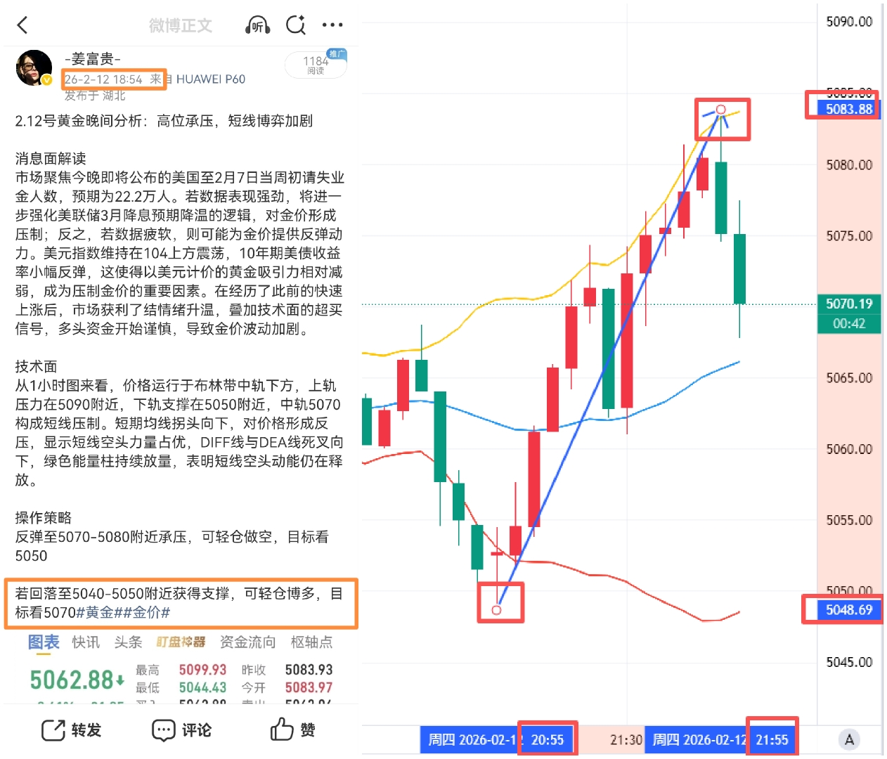 晚间策略再次命中,富贵晚间提示的做哆区间,行情精准回踩区间后一路拉升至5083,
