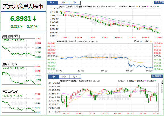 26-2-13,周五,早上好!美股三大指数集体收跌,纳指跌超2%,现货白银下挫逾
