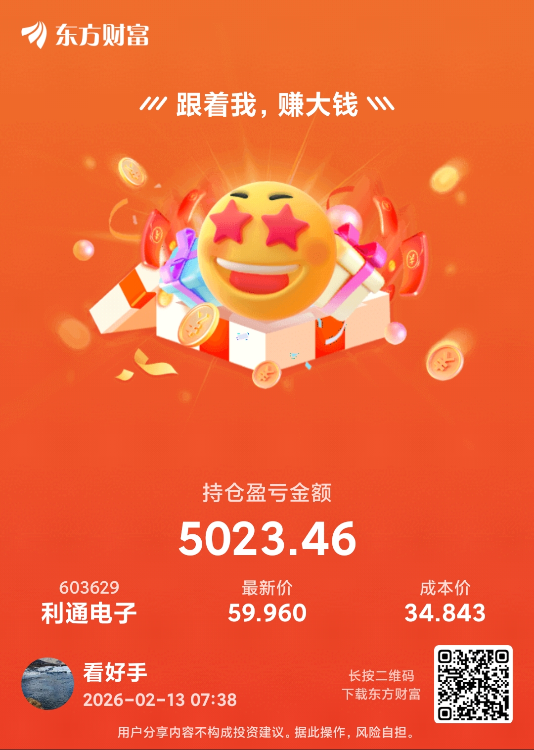 温馨提示: 1.根据《证券法》规定,禁止编造、传播虚假信息或者误导性信息,扰乱证券市场;2.用户在本社区发表的所有资料、言论等仅代表个人观点,与本网站立场无关,不对您构成任何投资建议。用户应基于自己的独立判断,自行决定证券投资并承担相应风险。《东方财富社区管理规定》