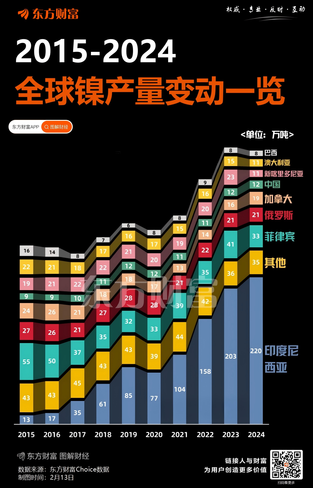 2月12日,盛屯矿业相关工作人员在电话中对《每日经济新闻》记者介绍,公司在印尼核心产能集中在冶炼端,印尼友山项目拥有3.4万吨高冰镍产能,国内还有8000吨综合镍产能。公司主要涉及冶炼端,因此受配额调整直接影响较小。
