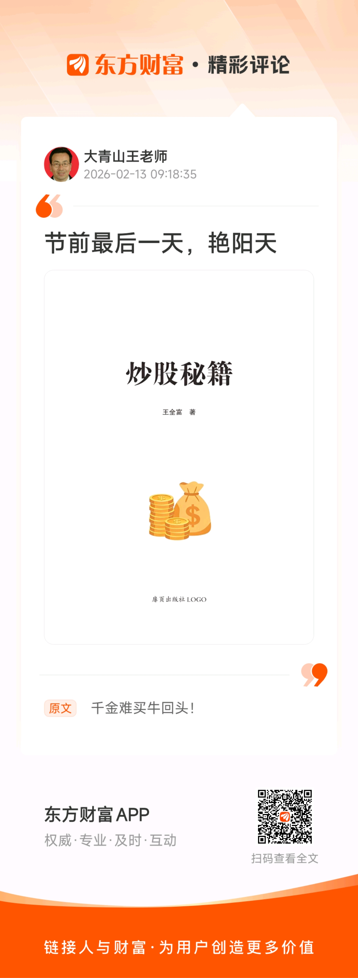 千金难买牛回头!