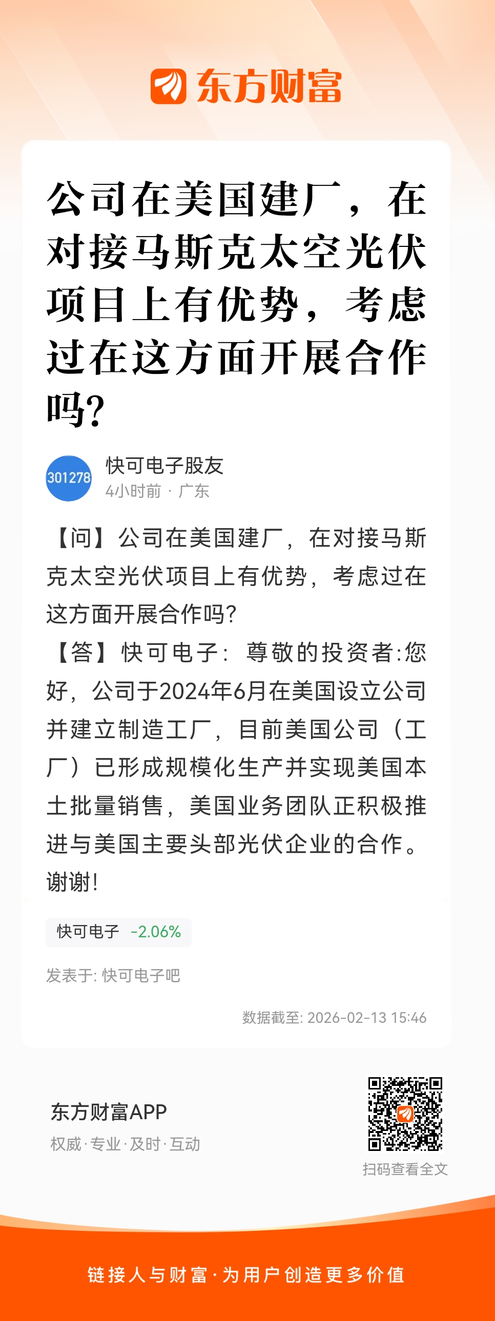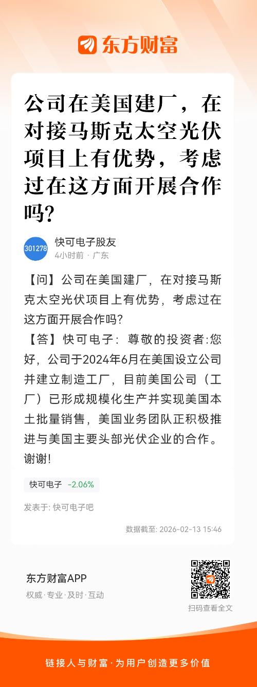公司在美国建厂,在对接马斯克太空光伏项目上有优势,考虑过在这方面开展合作吗?