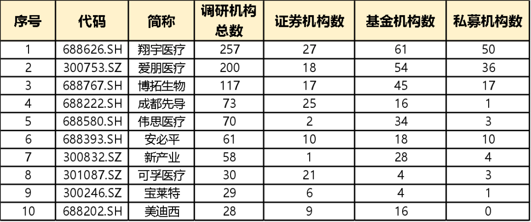 (医疗器械、医疗服务行业成分股调研情况,来源:Choice数据)