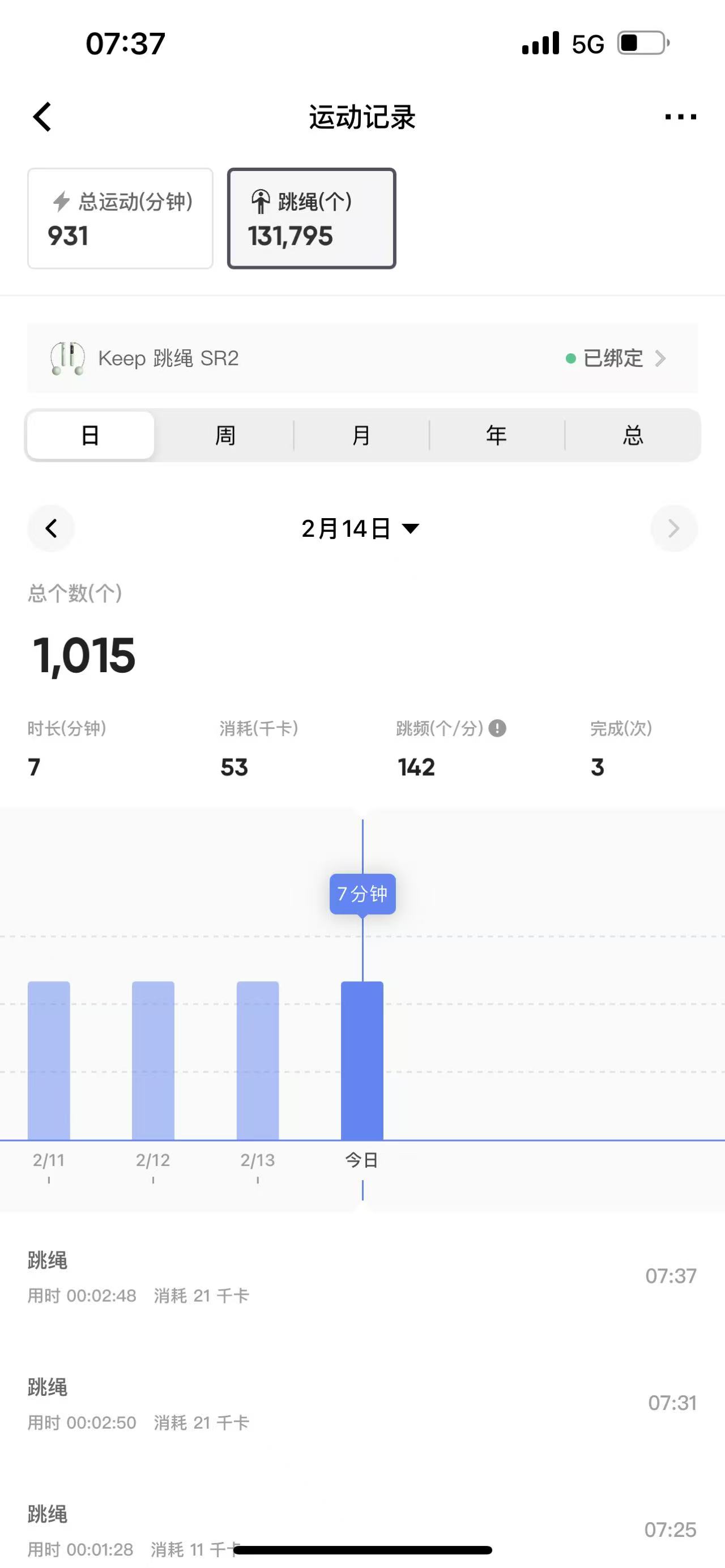 跳绳:1000个,累计跳绳:2180831个