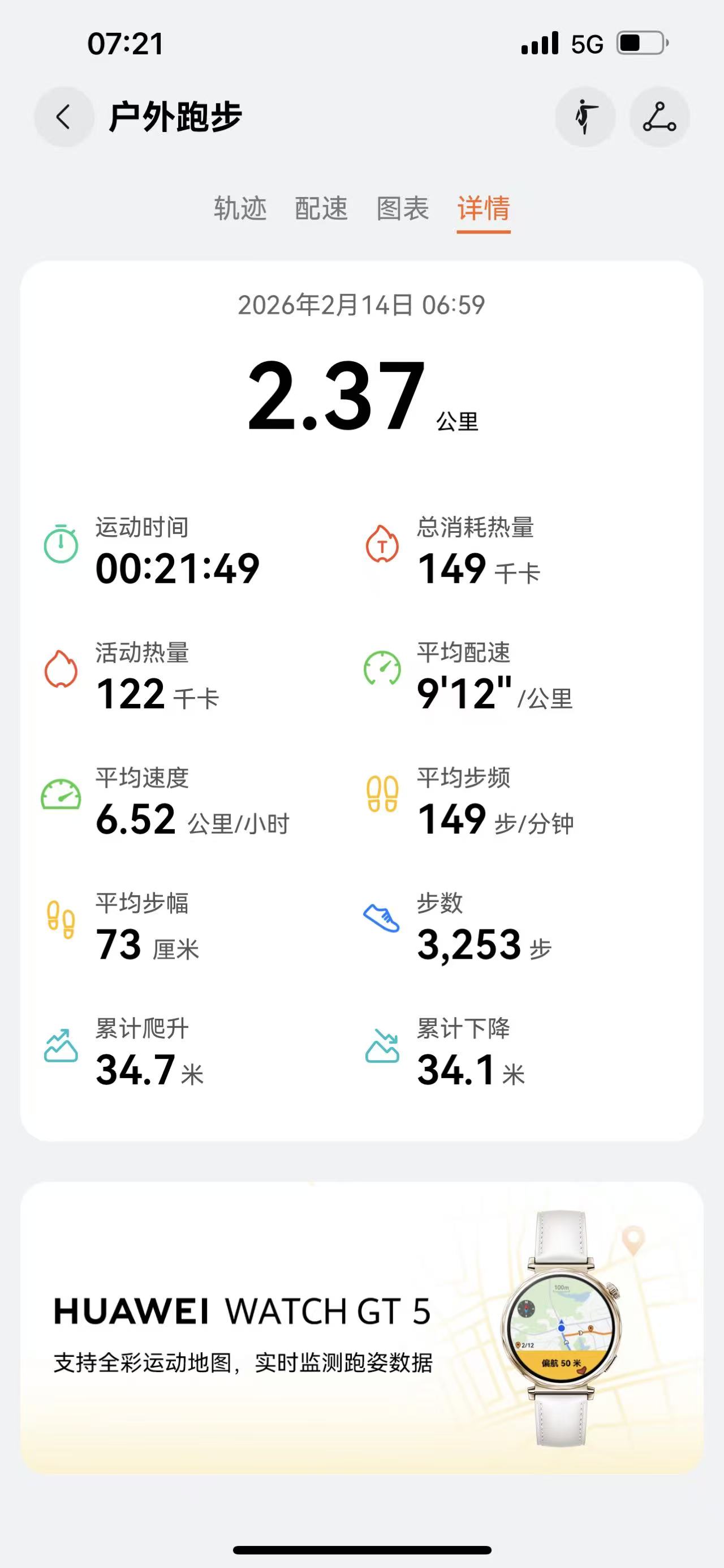 慢跑:2.37公里,累计慢跑:1321.30公里