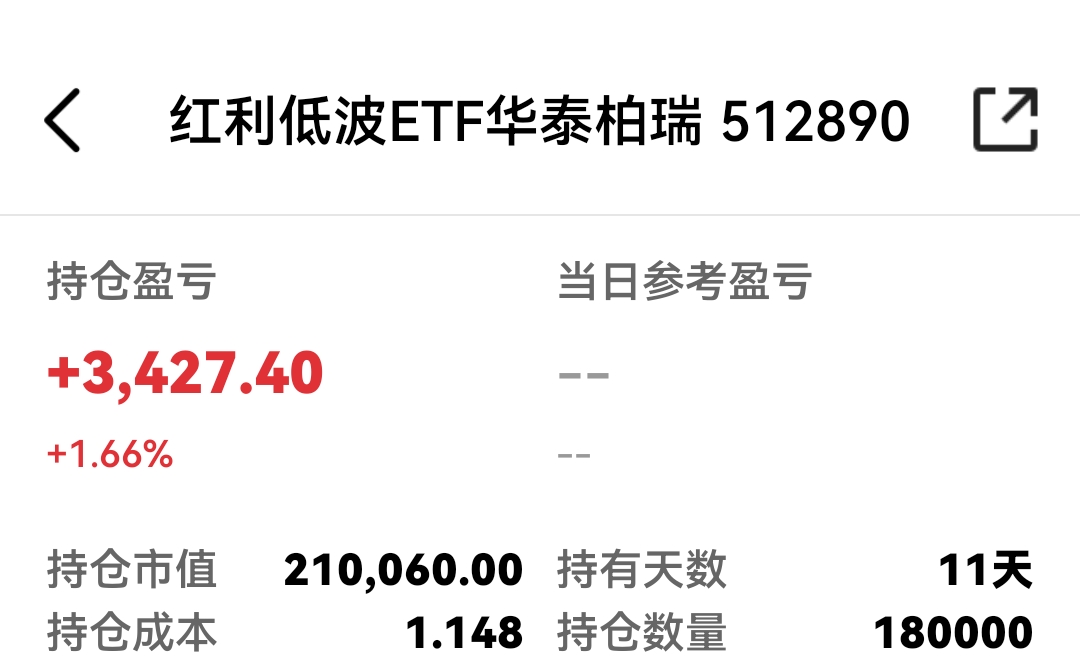 $红利低波512890,目前180000份额,拿出3万元的份额作为一个独立单元,
