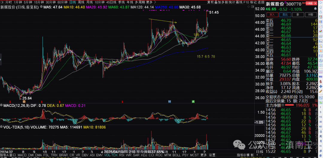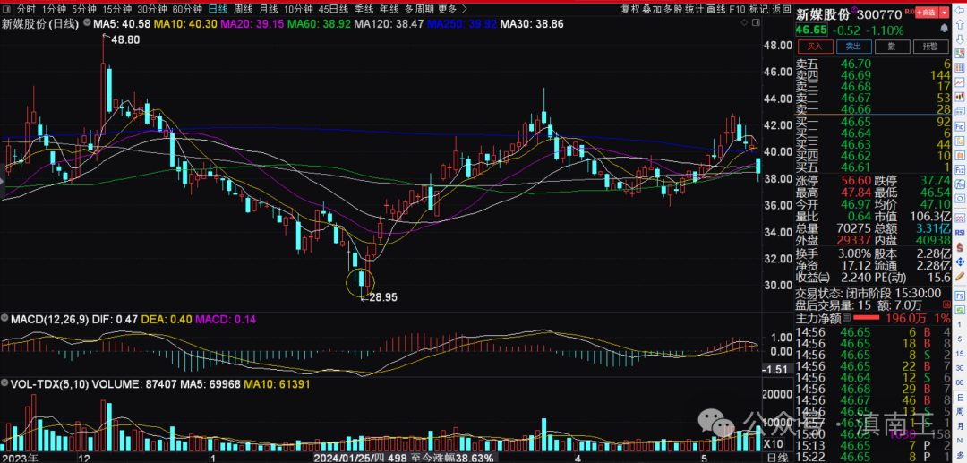对于新媒股份,感触大的原因,就是不像中国黄金那种强势,典型的属于走三步退两步的节奏,没什么太大的短期涨幅,偶尔出现大阳,也要调整几天,但是正因为这种慢吞吞的节奏,不知不觉的成为翻倍的例子!也让我再次明白,时间的价值!