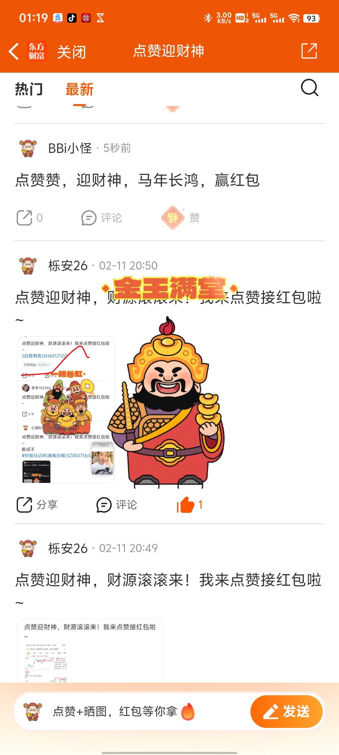点赞迎财神,财源滚滚来!我来点赞接红包啦
