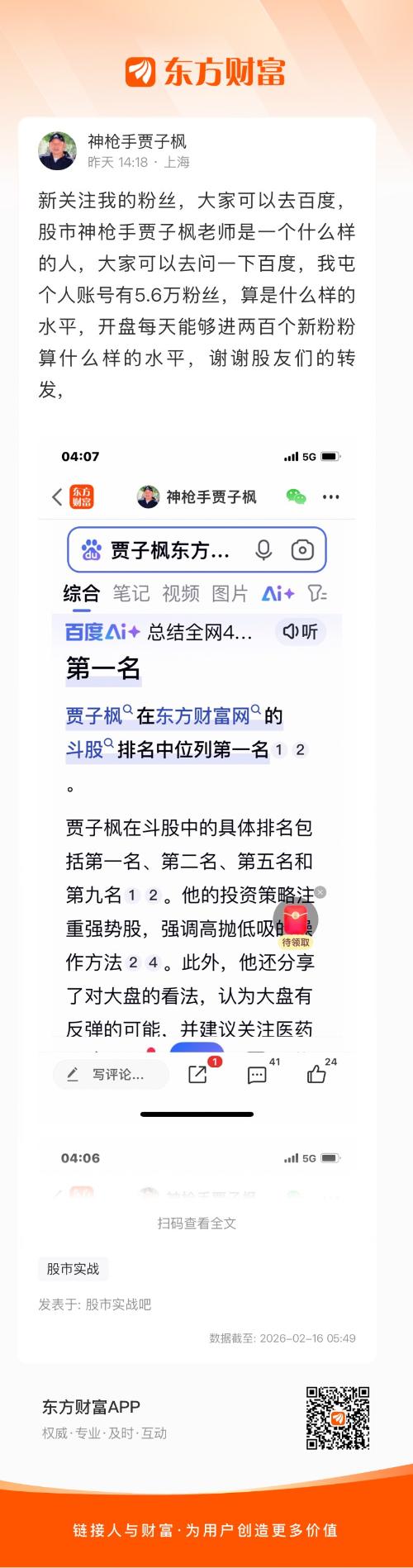 新关注我的粉丝,大家可以去百度,股市神枪手贾子枫老师是一个什么样的人,大家可以去问一下百度,我屯个人账号有5.6万粉丝,算是什么样的水平,开盘每天能够进两百个新粉粉算什么样的水平,谢谢股友们的转发,