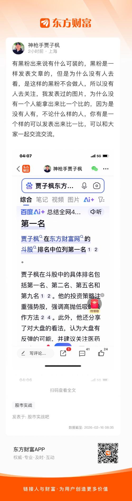 温馨提示: 1.根据《证券法》规定,禁止编造、传播虚假信息或者误导性信息,扰乱证券市场;2.用户在本社区发表的所有资料、言论等仅代表个人观点,与本网站立场无关,不对您构成任何投资建议。用户应基于自己的独立判断,自行决定证券投资并承担相应风险。《东方财富社区管理规定》