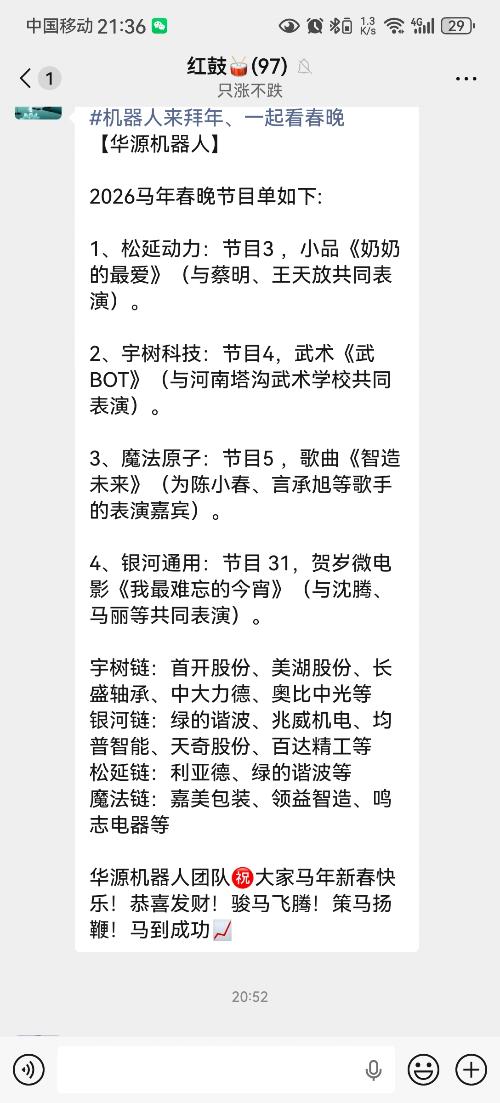 均胜电子(600699.SH)依托汽车零部件核心主业,战略延伸至具身智能机器人领域,主要客户包括海外机器人头部企业、国内机器人头部公司智元机器人、银河通用等,但相关业务尚处于前期起步阶段,营业收入占比不到0.1%。该公司接听电话的工作人员表示,机器人上春晚存在正面导向作用,但行业仍处于探索期,核心参与方的技术路线尚未完全收敛。