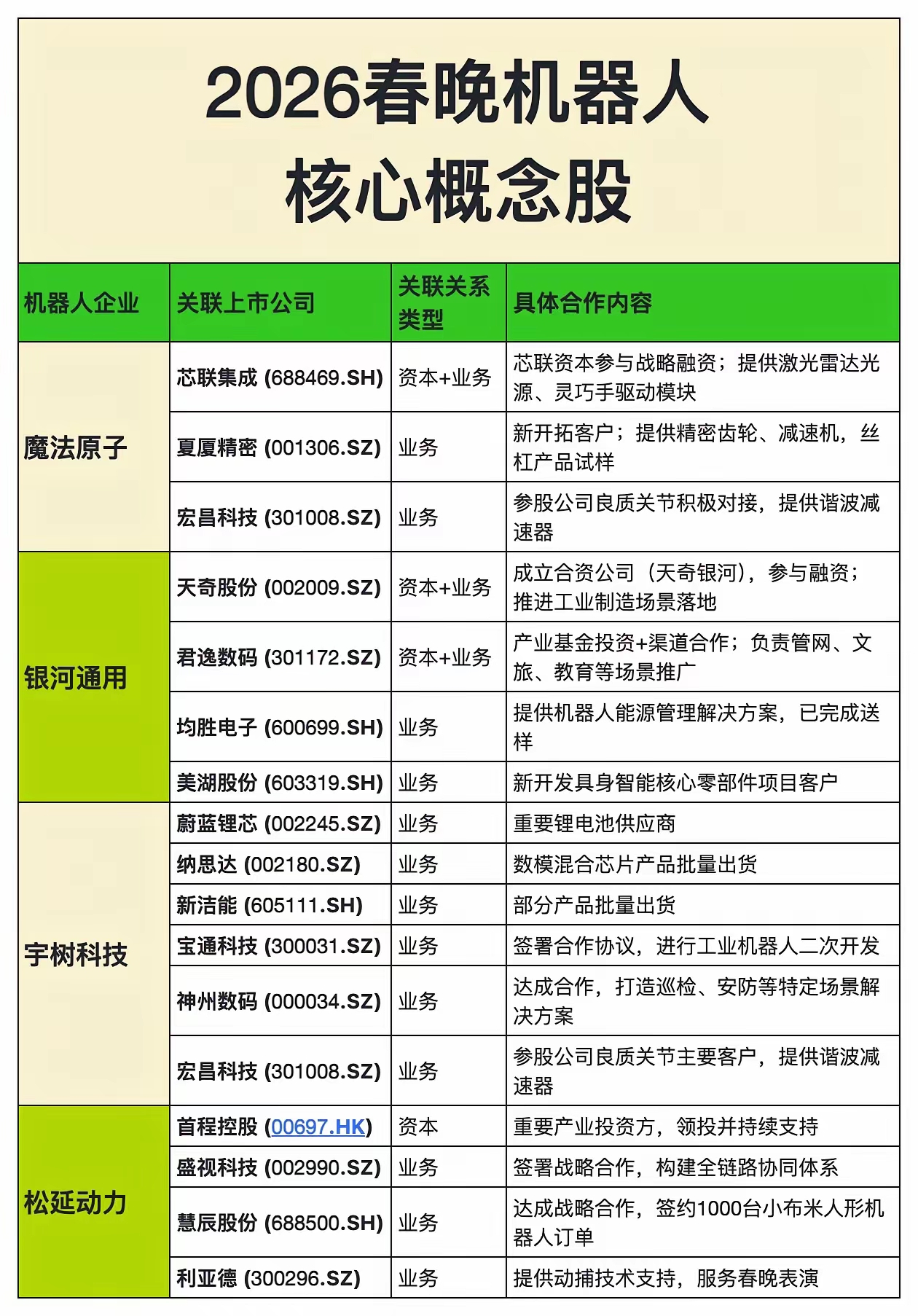 2026春晚机器人概念梳理注:数据来源公开资料整理,不作为投资建议,投资有风险,
