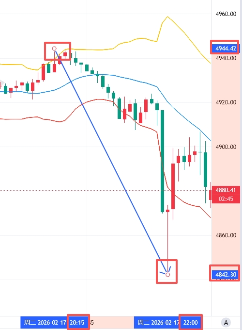 富贵晚间预判空头主导,给出4940-4950做空区间,行情精准触及区间后一路下探