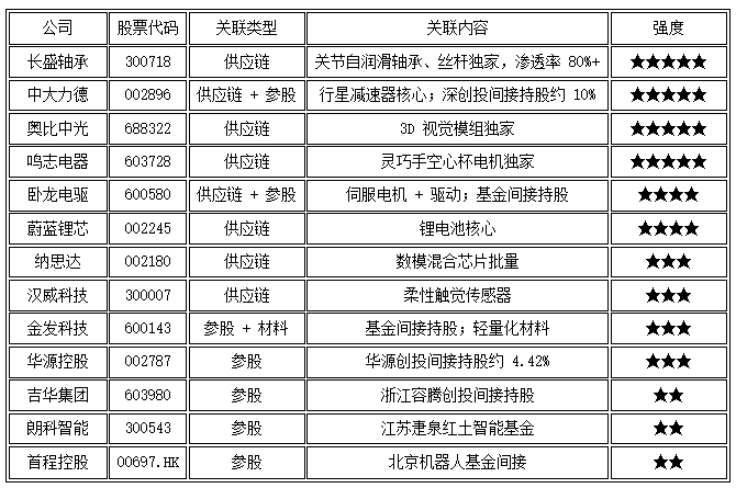 ★★★★★(极强):独家 / 核心供应商、合资 / 控股、直接大额参股