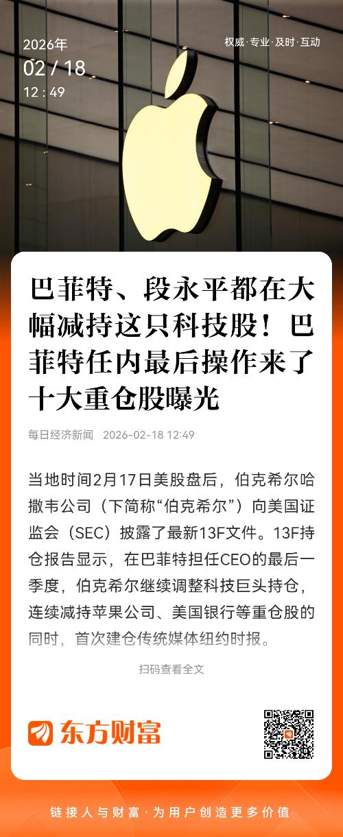 尽管持续减持,但截至2025年四季度末,苹果仍是伯克希尔的头号重仓股。