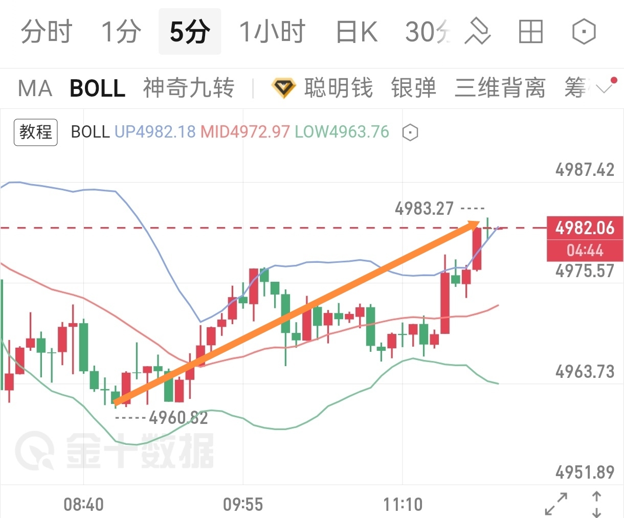 早评精准分析,黄金从4960附近拉升至4983,完美兑现目标区间,多头趋势明确,