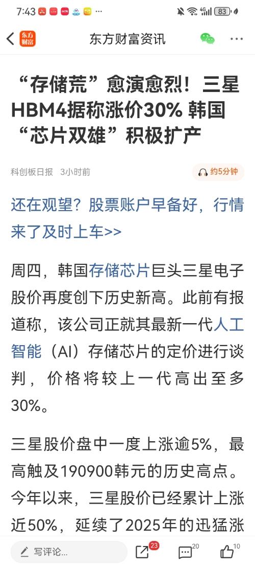 “这表明AI存储芯片市场供应依然紧张,同时三星认为自己在高端(芯片)市场重新夺回了一定的定价话语权。”她表示。