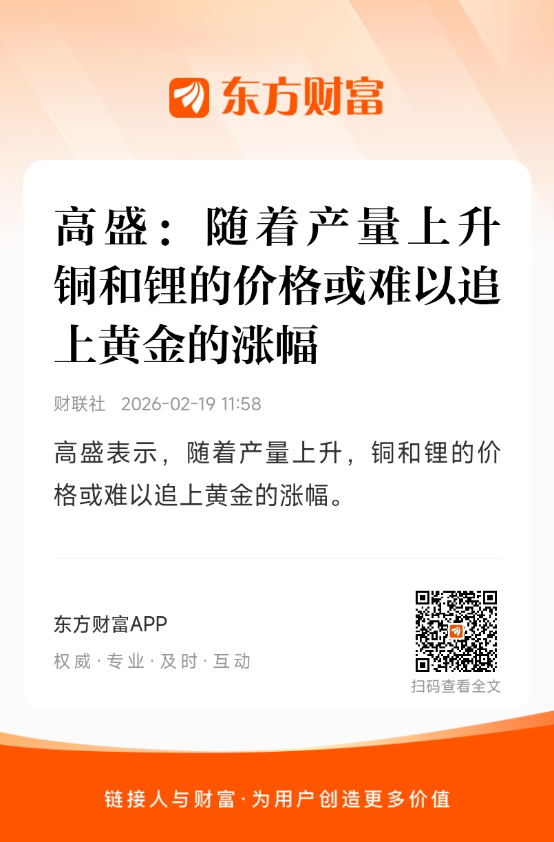 高盛表示,随着产量上升,铜和锂的价格或难以追上黄金的涨幅。