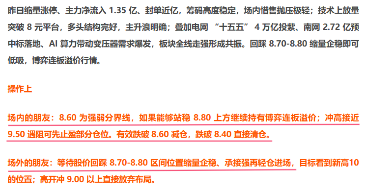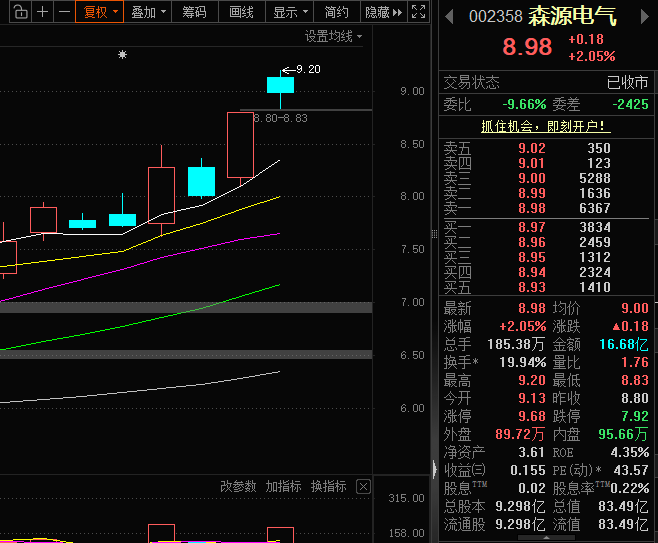 股价高开于9.13,超出早文所说的9.00,盘中也没在8.70-8.80区间出现低吸机会。那么我也是暂时放弃布局进场,全天依然维持观望等待合适的时机出现在重新布局。