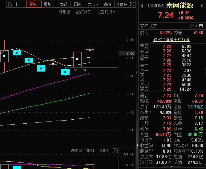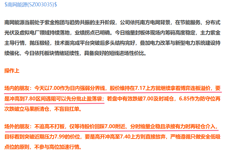 早盘高开冲高到7.31遇阻后,在7.17强弱分界线上方窄幅震荡,尾盘微涨收于7.24,量能放大但是主力紫金净流出,高位分歧显现,7.00支撑没破,也没出现需减仓或清仓的破位信号场内的朋友拿着就好不必惊慌。全天股价没有回踩到预期的7.00我也是选择观望。