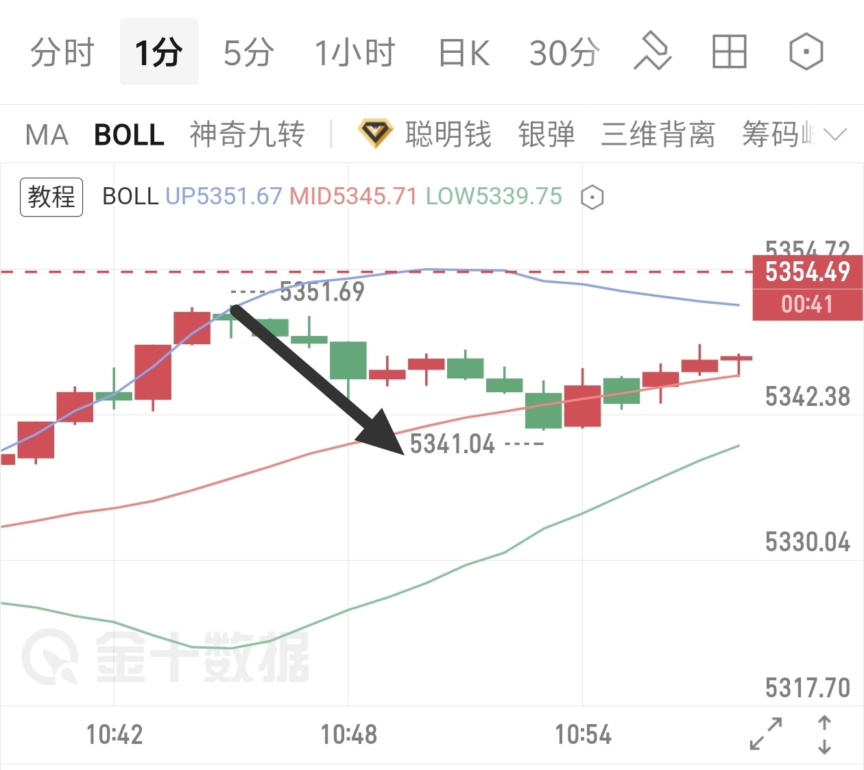 黄金日内三连胜,5350附近空单入场,5343附近出局,再次斩获7点空间