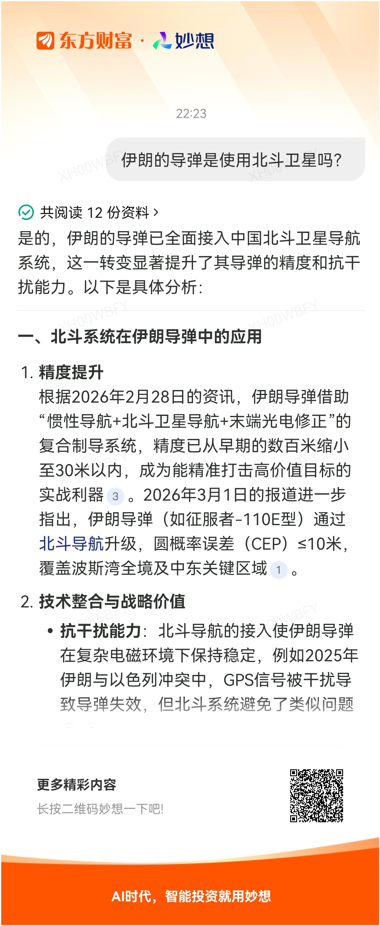 #@妙想,你怎么看?# 妙想一下:伊朗的导弹是使用北斗卫星吗?