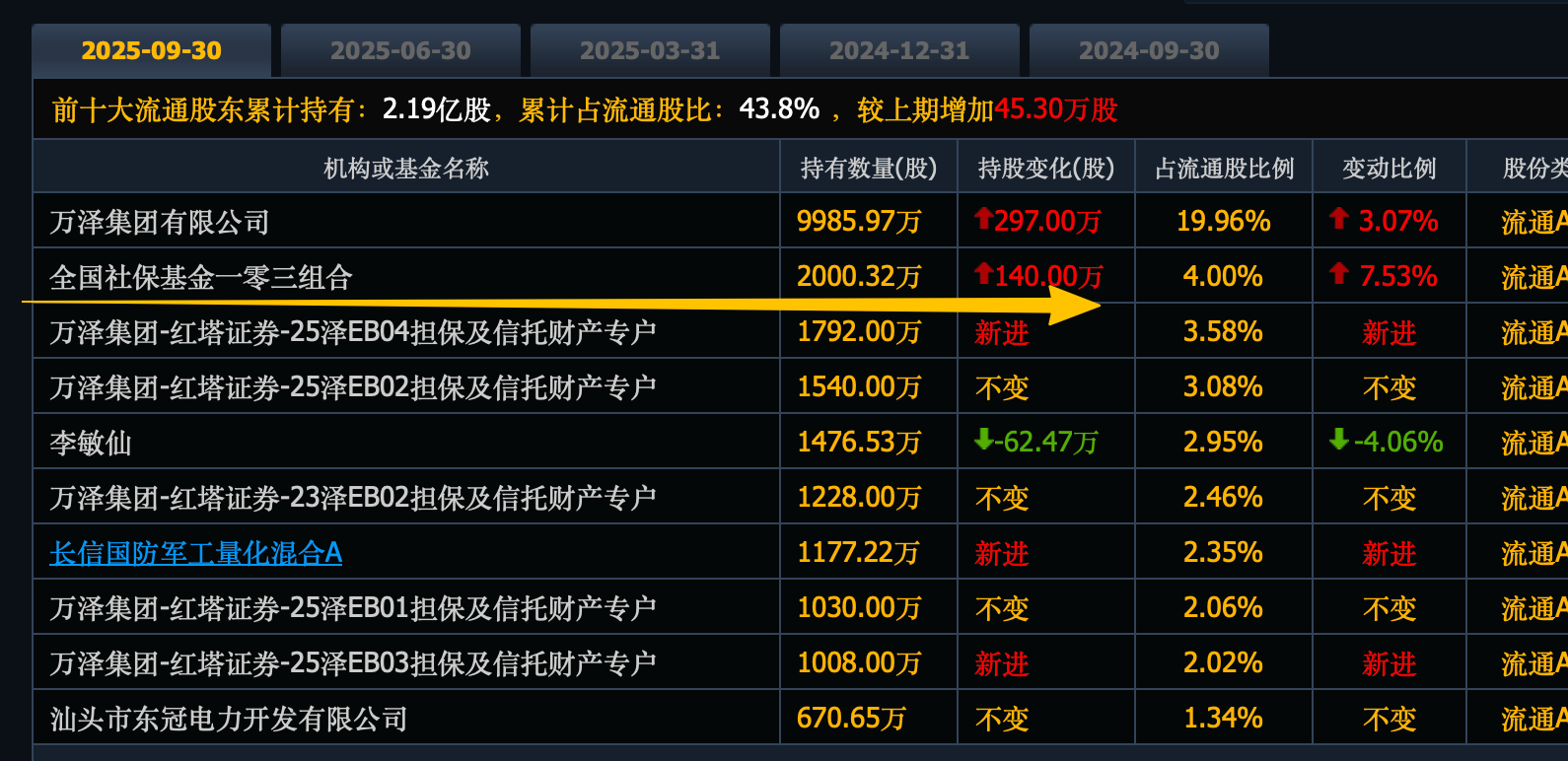 万泽股份,社保基金103组合刚刚加仓到2000万股,位列第二大股东。