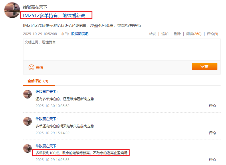 IM2512波段多单维持看向新高思路,还有持仓的继续等待