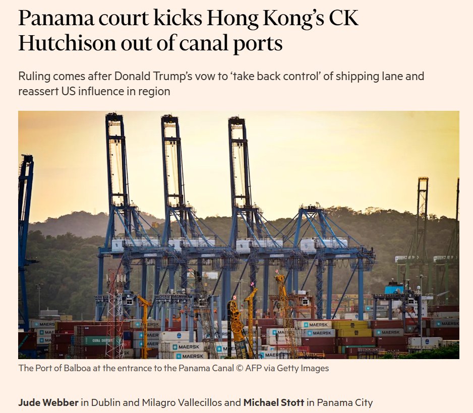 巴拿马最高法院宣布,长江和记实业子公司和记港口持有的巴拿马运河两端主要港口(巴尔博亚港和克里斯托瓦尔港)的特许权违宪。