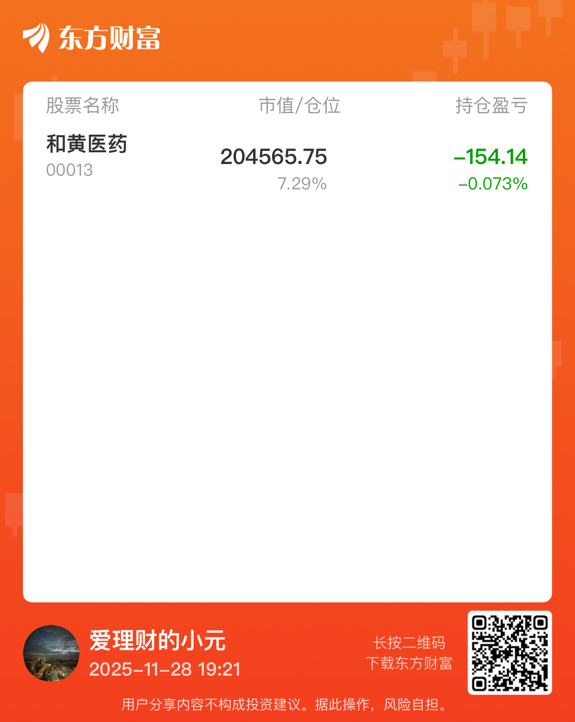 今天我入了20万和黄,不涨20个点我不走。跌就买,涨不卖。李嘉诚投资的医药股,我