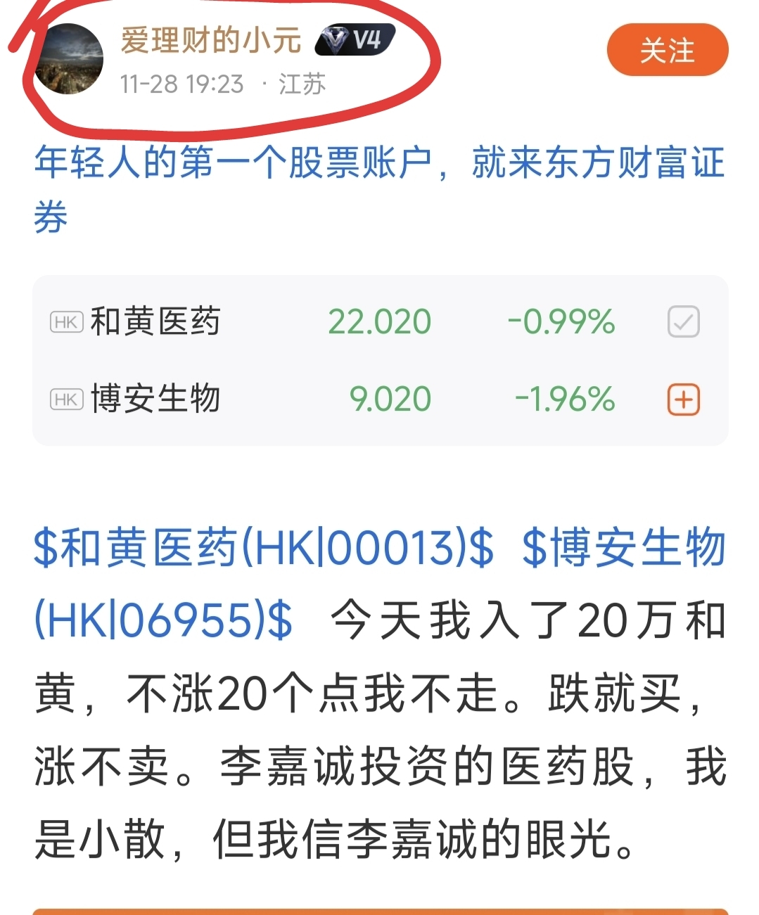 郑重声明:用户在财富号/股吧/博客等社区发表的所有信息(包括但不限于文字、视频、音频、数据及图表)仅代表个人观点,与本网站立场无关,不对您构成任何投资建议,据此操作风险自担。请勿相信代客理财、免费荐股和炒股培训等宣传内容,远离非法证券活动。请勿添加发言用户的手机号码、公众号、微博、微信及QQ等信息,谨防上当受骗!