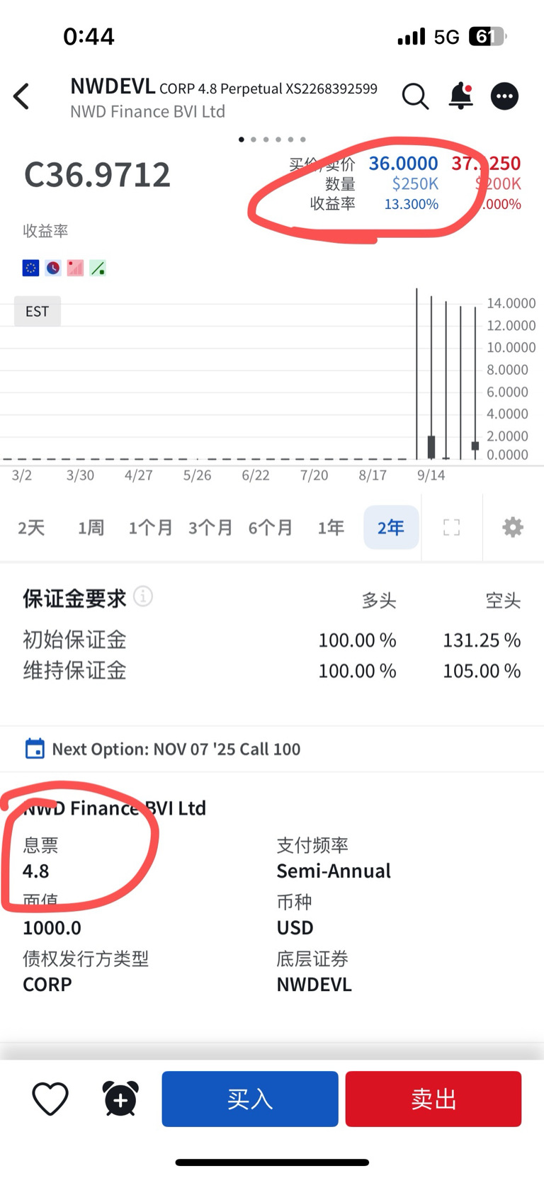 $新世界发展(HK|00017)$ 新世界发展的美股ADR基本上没有流动性(买1价格0.44,卖1价格0.53),美元永续债从100跌到37,现在利率是13+%,我还继续持有新世界港股通73万股+富途牛牛1.2万股