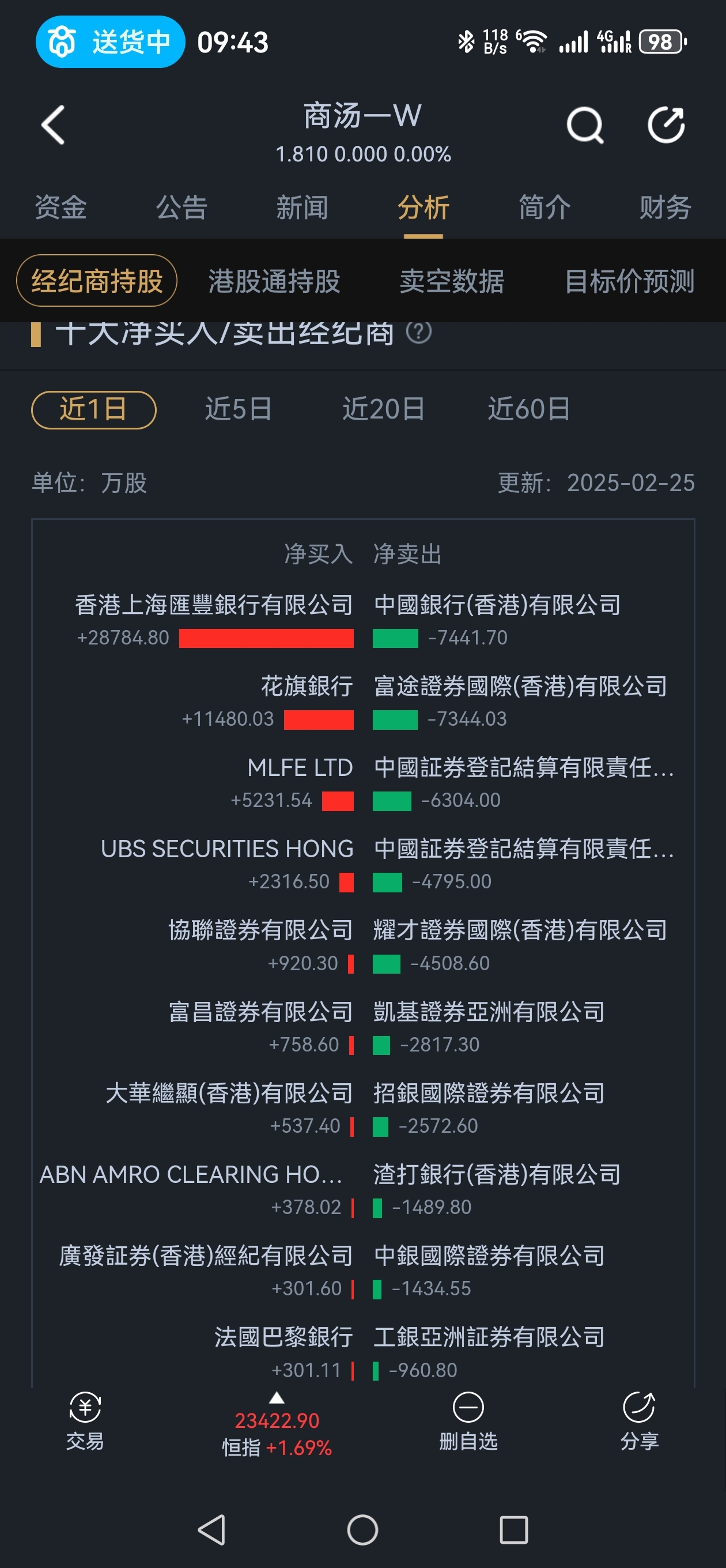 上周五21号大涨还是因为外资机构大举买入才上涨的……而港股通和富途散户在卖出……