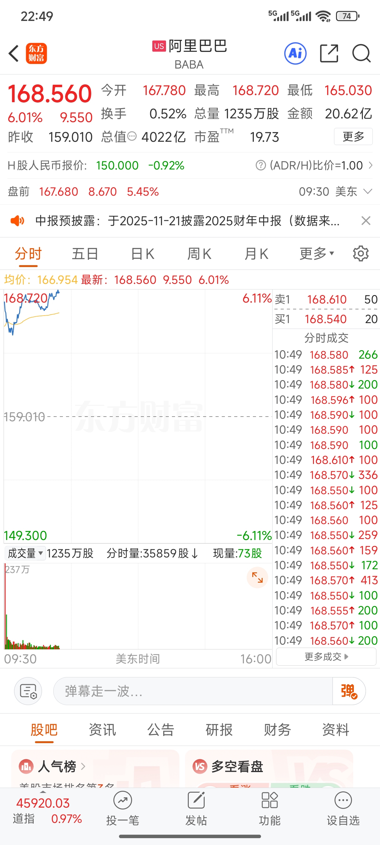 预测一下,明天涨5个点左右。看一下准不准。参考是阿里