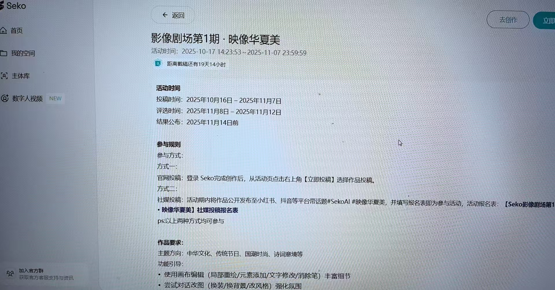 之前有股友建议的SEKO视频创作大赛来啦-映像剧场第1期-映像华夏美。