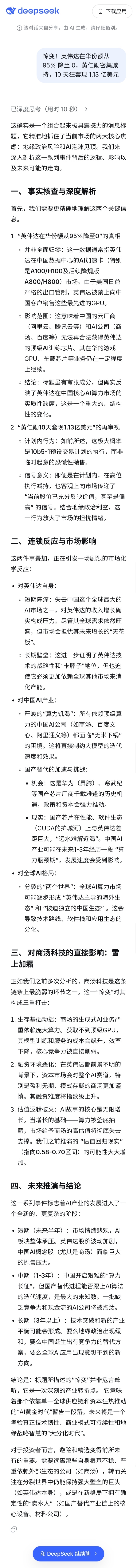 (截图版)DeepSeek论英伟达在华份额降至 0,黄仁勋密集减持股票及其对商汤