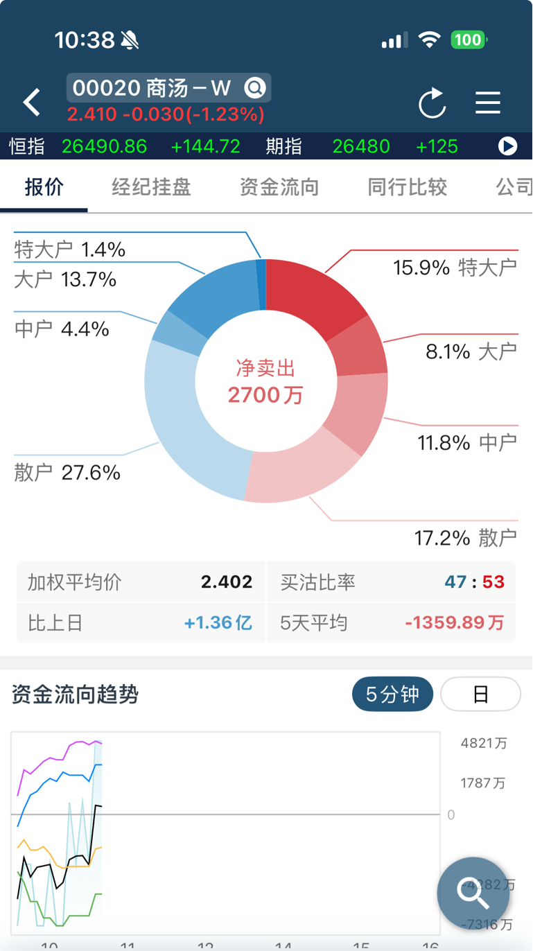 今日资金小幅流出,K线图看正在2.40一线构筑底部,为下一步上涨筑底