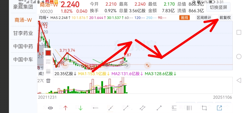 $商汤-W(HK|00020)$ 商汤发行价3.85港元每股,搞了几年发展,变成了2.23港元!确实是倒退了!看了一下技术线,若不突破3.7港元,就确定不了上涨趋势。那只能够上崩下跳。只有突破3.7港元,才可能开启新的上涨周期!慢慢等。