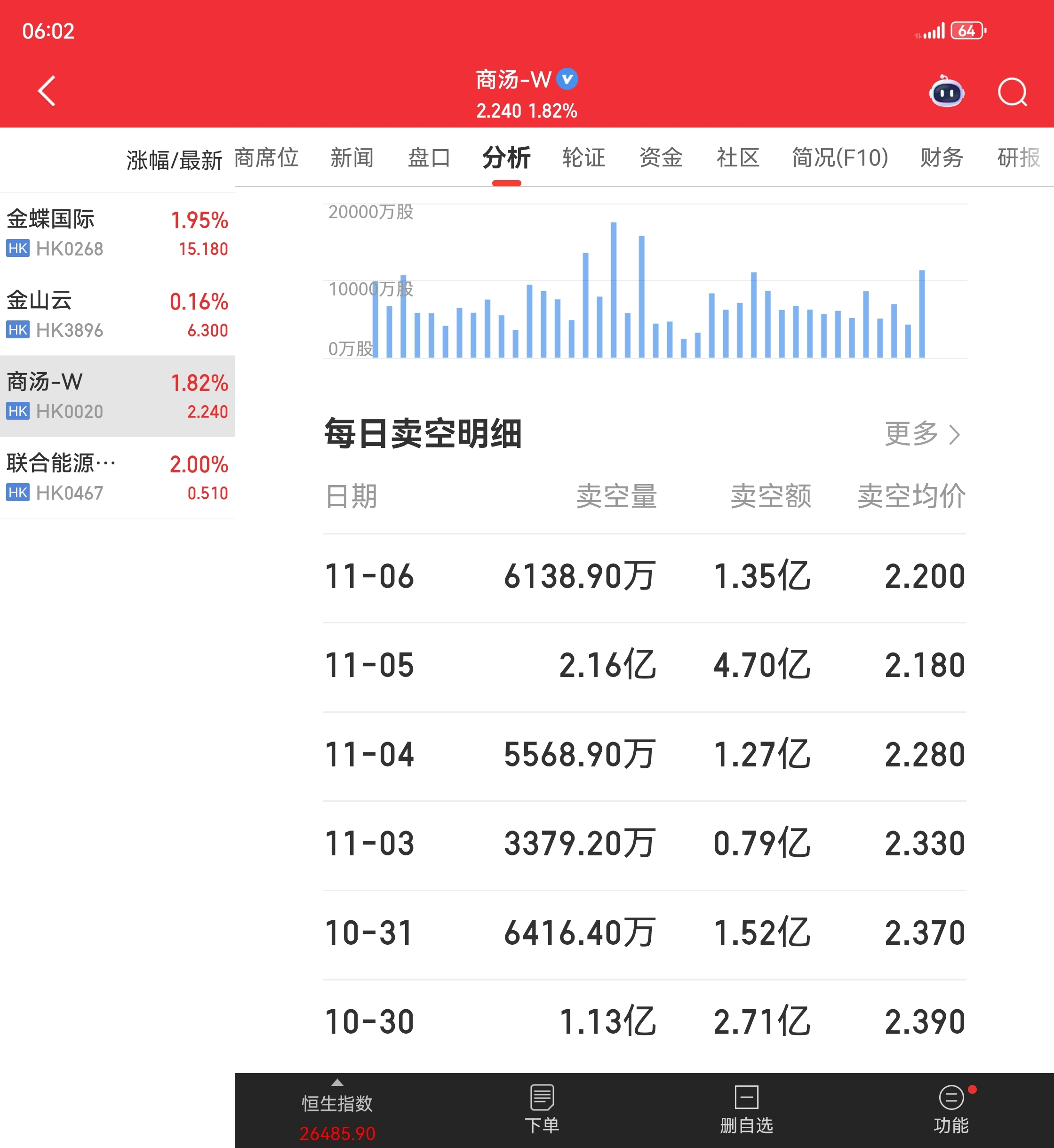 $商汤-W(HK|00020)$ 五号做空的2.18,4.7个亿,要是涨上去,空头就得爆