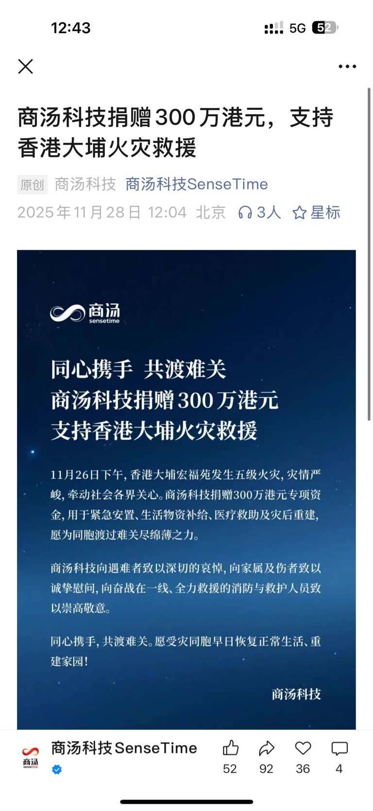 $商汤-W(HK|00020)$ 有责任,有担当!下午发力