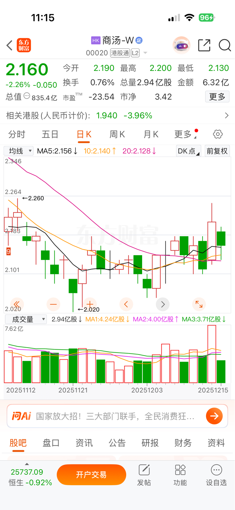 $商汤-W(HK|00020)$ 2.18 ~2.21是颈线附近