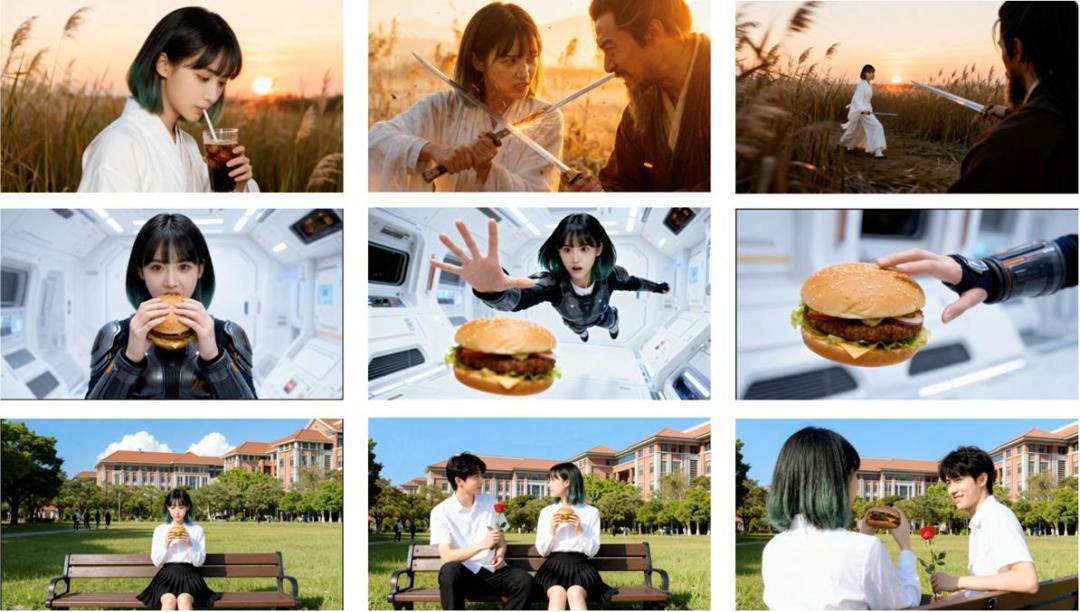 多剧集、跨分镜的角色一致性一直是行业难点。传统的生成方法要么会导致角色与参考图如同“复制粘贴”而缺乏生动性,要么会因新的动作或表情指令导致“面目全非”。SekoIDX通过在扩散模型的高噪阶段引入“负参考图”,既保证角色在多剧集、跨分镜中的一致性,又避免内容与参考图过度相似,同时在响应不同表情、姿态、场景等指令时依然能保持高度稳定。