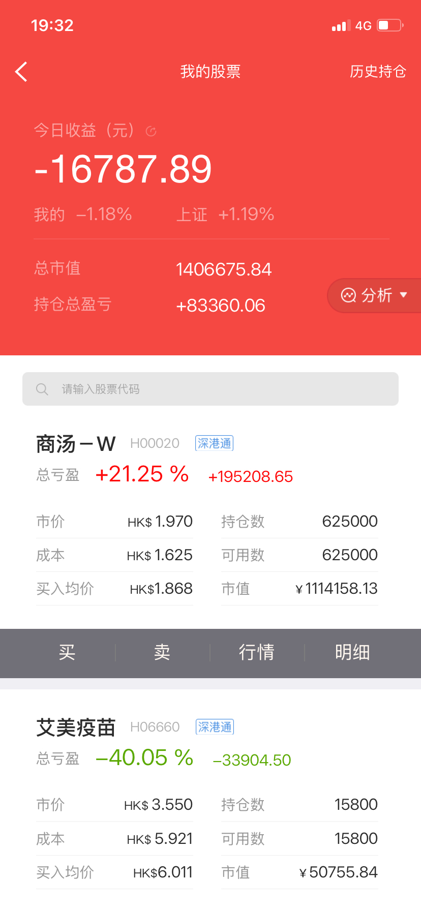 $商汤-W(HK|00020)$ 想到可能调整,但真没想到下来了一元,利润全吐出来了,仓位也达到最高峰了,还能加仓10万股,养老股!最多再跌五毛钱!现在唯有坚守!就是每天看盘有点折磨人,又做不到不看盘!