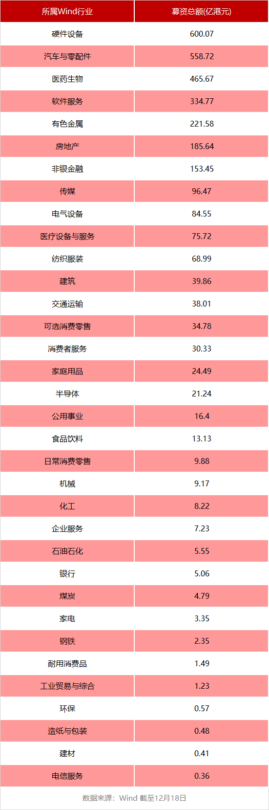 从行业角度来看,硬件设备、汽车与零配件、医药生物、软件服务等行业成为配售主力。数据显示,今年以来,硬件设备行业配售数量有28起,合计募资金额为600.07亿港元,其中,小米集团配售募资426亿港元,占据了该行业的七成。